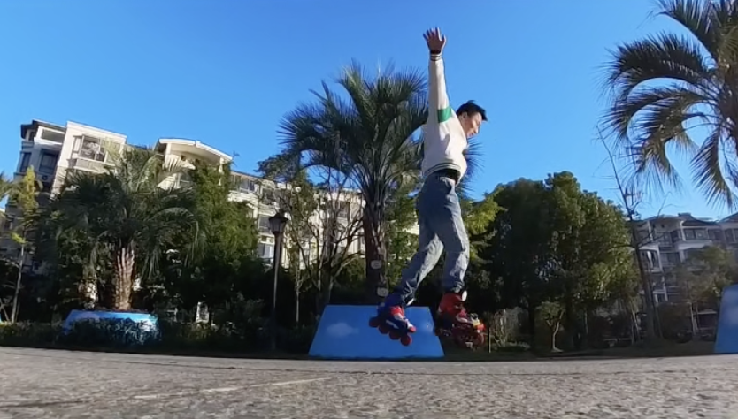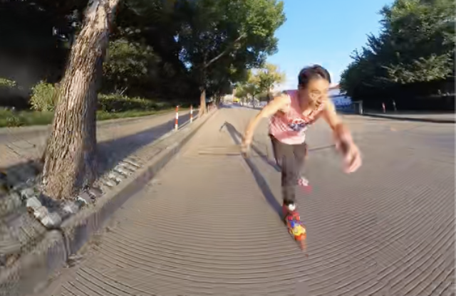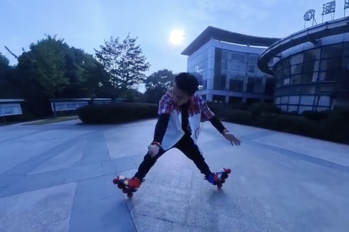 “在早起的清晨,干点自己喜欢的事,比如轮滑~”